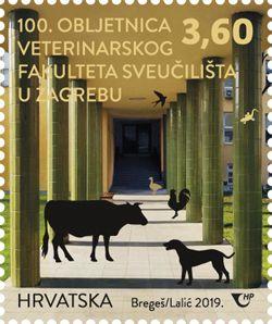 S osobitim ponosom i zadovoljstvom predstavljamo vam poštansku marku u povodu 100. obljetnice Veterinarskoga fakulteta Sveučilišta u Zagrebu. Dana 13. studenoga ljeta 1919. prvi je put izgovorena nastavna besjeda na Veterinarskoj visokoj školi, koja je pet godina poslije preimenovana u Veterinarski fakultet. Otada pa do danas, u prvom stoljeću svojega postojanja, naša je ustanova jedina visokoobrazovna institucija u Hrvatskoj koja u kontinuitetu stvara doktore veterinarske medicine i time tka povijest veterinarske struke i djelatnosti na ovim prostorima, ali i gradi svoje mjesto u europskom obrazovnom prostoru. Promišljanja o potrebi osnivanja samostalne veterinarske visoke škole ili fakulteta u Hrvatskoj, kao i pokušaji uvjeravanja tadašnjih vlasti u Beču i Budimpešti o toj nužnosti, sežu još u sredinu 19. stoljeća, kada su brojni veterinari, koji su završili studije u europskim veterinarskim školama, pokretali brojne aktivnosti važne za razvoj veterinarstva u Hrvatskoj. S tom se temom u više navrata proaktivno nastupalo, ali i pisalo u različitim glasilima. No do osnutka visoke veterinarske škole nije došlo jer nije bilo političke volje od strane monarhije, koja bi dopustila obrazovno osamostaljenje Hrvatske, nego se ustrajalo na njezinoj kulturnoj i ekonomskoj ovisnosti o Beču i Budimpešti. Tek svršetkom Prvoga svjetskoga rata i raspadom Austro-Ugarske Monarhije nestalo je političke zapreke osnivanju veterinarskoga učilišta u Hrvatskoj. Tako je već 25. studenoga 1918., na sjednici Odbora Hrvatsko-slavonskoga veterinarskoga društva, ravnatelj Zemaljske potkivačke škole Eugen Podaubsky podnio prijedlog za osnivanje Veterinarske visoke škole u Zagrebu. Uslijedile su potom brojne aktivnosti za izradu Nacrta zakonske osnove za ustroj Veterinarske visoke škole u državi SHS, koji bi sadržajno odgovarao statutima tadašnjih veterinarskih škola u njemačkim zemljama koje su u to vrijeme imale najrazvijenije veterinarstvo. Veterinarska visoka škola u Zagrebu konačno je počela sa svojim radom u školskoj godini 1919./1920. na temelju Uredbe koju je 31. kolovoza 1919. propisao regent Aleksandar Karađorđević. Osobite zasluge za uspješno osnivanje Veterinarske visoke škole imali su veterinari Eugen Podaubsky, dr. Fran Gabrek i Stjepan Plasaj, kao i tadašnji povjerenik za prosvjetu i vjere dr. Milan Roje, koji je bio zaslužan i za osnutak drugih prosvjetnih ustanova u Zagrebu. Prvi semestar na Veterinarskoj visokoj školi u Zagrebu otvoren je 26. rujna 1919., upisano je 59 studenata iz različitih krajeva tadašnje države, a uprava Škole povjerena je dekanu Mudroslovnoga fakulteta, prof. dr. Stanku Hondlu. Veterinarskoj visokoj školi dodijeljena je dvokatnica Zemaljske potkivačke škole i prizemne dvorišne prostorije za smještaj klinika u Savskoj cesti. Tako je škola mogla početi s radom prvim predavanjem iz predmeta Anatomija, koje je 13. studenoga 1919. održao Jaroslav Sakar. Ovo nije samo priča o nastanku stožerne ustanove veterinarskoga visokoškolskoga obrazovanja, nego i podsjećanje na stogodišnji razvojni put, značenje i nastojanja brojnih generacija nastavnika i studenata, koje odmicanjem vremena potvrđuju opravdanost ulaganja u izvrsnost kako bismo danas imali vodeću obrazovnu instituciju doktora veterinarske medicine kojoj možemo služiti i unapređivati je. Tu poziciju želimo i moramo zadržati i u vremenu koje dolazi proaktivnim djelovanjem i u obrazovanju doktora veterinarske medicine i u znanstvenim istraživanjima, stručnom radu, cjeloživotnom obrazovanju te međuinstitucijskoj i međunarodnoj suradnji. Osobito smo ponosni što se naša obljetnica poklapa i s 350. godišnjicom osnutka Sveučilišta u Zagrebu, kolijevke hrvatskoga visokoga obrazovanja i znanosti, čija smo ponosna sastavnica. prof. dr. sc. Nenad Turk dekan Veterinarskoga fakulteta Sveučilišta u Zagrebu