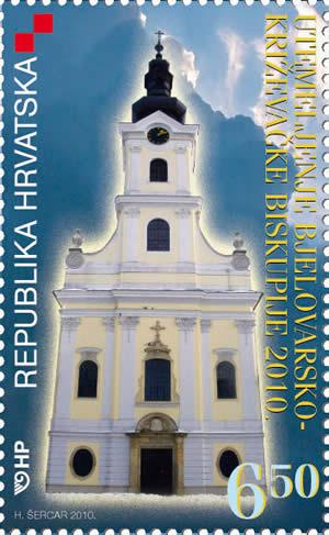 Motiv: pročelje bjelovarske prvostolnice Grad Bjelovar sagrađen je zbog vojno-strateških razloga sredinom 18. stoljeća, tj. 1756. godine, u doba Vojne granice.