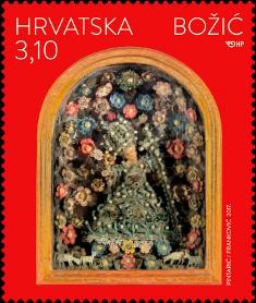 Mali Isus na ovogodišnjoj hrvatskoj božićnoj marki potječe iz sjeverne Hrvatske. Svojim vještim i strpljivim rukama početkom devetnaestog stoljeća izradile su ga varaždinske časne sestre uršulinke.