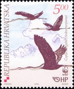 Hrvatska je pošta u suradnji sa Svjetskim fondom za očuvanje prirode (World Wide Fund For Nature –WWF) izdala četiri prigodne poštanske marke s motivom čaplje dangube. Na markama su otisnuti znak pande - logotip WWF-a, uz suglasnost registriranog vlasnika zaštićenog znaka. Motiv: Čaplja danguba (Ardea purpurea) u različitim pozicijama. Čaplja danguba (Ardea purpurea Linn. 1766), nazvana još i crvena čaplja, čaplja mrka, zmijar, čađo, spišac, ptica je vodarica ili močvarica pripadnica hrvatske ornitofaune. Selica je koja u naše krajeve stiže koncem ožujka, a napušta ih u kolovozu, rujnu pa i kasnije. Poznate su kolonije ove čaplje u Kopačkom ritu, Krapje djolu, Jelas polju u Hrvatskoj te na Balatonu i Valencijskim jezerima u Mađarskoj, Treboni u Češkoj, a na više je mjesta ima u Slovačkoj, na Nižiderskom jezeru u Austriji, u Friziji i Utrechtu u Nizozemskoj, u poriječju rijeke Po u Italiji, Camargu u Francuskoj, Delti Dunava u Rumunjskoj, te u južnoj, centralnoj i sjevernoj Africi, Portugalu, Španjoslskoj, u južnim dijelovima Rusije, u Maloj Aziji i sjevernom Iranu. Čaplja danguba je u većini europskih zemalja zakonom zaštićena. Štite je mnoge međunarodne konvencije: Bonska (1975.) i Bernska (1979.), zatim Sporazum o zaštiti afričko – euroazijskih migratornih ptica močvarica (AEWA - 1995.), Konvencija o zaštiti vodenih staništa iz Ramsara (1971.) a kod nas je zaštićena Zakonom o zaštiti prirode iz 2003. te Pravilnikom o zaštiti pojedinih vrsta ptica iz 1995. Čaplja danguba spada u veće ptice. Dužina joj je 79 cm, raskriljena krila dosežu i do 135 cm, a teži oko 1 kg. Tijelo joj je vitko, dugih nogu i oštrog šiljastog kljuna te kestenjastog perja. Čelo ptice i gornji dio glave zajedno s ukrasnim perima je crno, kao i prsa i trbuh, a tamniji su i dijelovi ramena i dijelovi prsa. Crne se pruge pružaju od kljuna, ispod lica do prsiju, a perje vrata i dijelovi lica su kestenjasto–smeđi. Leđa s krilima i zadkom su plavo-siva. Pleća su prekrivena crveno-smeđim i šarenim perima koja su ukras ptice. Ptica ima žute oči i zelenkasto-žute noge. Stopala su joj veća nego u sive čaplje kojoj sliči. Sličnost je izraženija u letu, a razlikuju se po jače zakrivljenom vratu pri čemu joj je kut zakrivljenja tzv. «S» vrata znatno oštriji nego kod sive čaplje. U zraku se glasa nešto jače od sive čaplje, a za vrijeme gniježđenja, u koloniji čaplji glasanje je vrlo intenzivno danju i noću. Čaplja danguba je stanovnik ritsko-močvarnih biljnih zajednica u kojima prevladava trstika (Phragmites australis), jezerski oblić (Schoenoplectus lacustris), razne vrste rogoza (Typha), šaševa (Carex) i druge vrste koje čine poznatu fitocenozu trstike s rančićem (Scirpo – Phragmitetum W. Koch 1926.). Premda je tršćak najčešće mjesto zadržavanja i gniježđenja europske populacije nalazimo ju i u drugim staništima s drugačijim vegetacijskim obraštajem. Gnijezdi se i na niskim grmolikim stablima johe, u vrbovoj šikari (kao u Krapjem đolu na Lonjskom polju). Zanimljivo je da su u Lonjskom polju nađena gnijezda na stablima hrasta lužnjaka i grmovima gloga, a gnijezdi se čak i na stablima do 25 m visine. Nakon ritualnog sparivanja koje je slično sivoj čaplji (Ardea cinerea Linn. 1758.), par zasniva gnijezdo jednostavne građe izgrađeno od vlati šaša, trstike i sl. materijala iz okolice. U gnijezdu se nađe 4 do 5 plavkasto–zelenkastih jaja, a inkubacija traje 25 do 30 dana. Izlegli mladi su čučavci, a spremni su za napuštanje gnijezda za 7 do 8 tjedana. Čaplje su brižni roditelji, redovito ih hrane i štite od prejakog sunca i neprijatelja. Gnijezda svijaju u čistoj ili mješovitoj koloniji s drugim vrstama čaplji: sivom, velikom bijelom (Egretta alba L. 1758.), žutom (Ardeola ralloides Scopol. 1769.), gakom (Nycticorax nycticorax L . 1758.) pa i sa žličarkom (Platalea leucorodia L. 1758.).