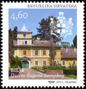 Bilje – dvorac princa Eugena Savojskog Dvorac u Bilju (mađarski Béllye), desetak kilometara sjeverno od Osijeka, sagradio je u prvoj polovini 18. stoljeća princ Franjo Eugen od Savoje i Pijemonta (1663. – 1736.).