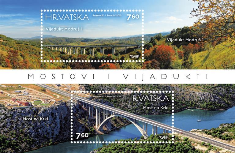 | Description: | Motifs: bridge over Krka River, viaduct Modruš 1 Author: Dean Roksandić, designer from Zagreb Photographs: Mario Romulić Souvenir sheet composed of two stamps and First Day Cover (FDC) issued by Croatian Post. |