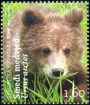 The author of the photograph of the Brown Bear is Đuro Huber. In Croatia there lives a Brown Bear (Ursus arctos), one of the eight species of bears in the world. It belongs to the order of beasts (Carnivora) and the family of bears (Ursidae). Although a beast, the Brown Bear satisfies 95% of his nutritional requirements by eating plant food, while for the rest of 5% of animal proteins in bear’s food provide mainly invertebrates and large animal carcasses. Among plant food in spring and summer dominate herbaceous plants and grasses, supplemented in summer also with various soft fruits and in autumn with the fruit of the beech as the main food used in the formation of winter reserves of subcutaneous fat. Bears are the biggest living meat eaters on land. In Croatia grown-up females weight between 100 – 130 kg, and males between 150 – 200 kg, some even up to 300 kg. Within the period of one year the weight of a grown-up bear can vary for more then one third: the greatest weight is in late autumn before lair building, and the smallest in the beginning of summer, i.e. at the end of the pairing season. The body is covered by long fur and thick underfur predominantly brown, often dark brown, even black, on the spine. While walking, the bears touch earth with whole foot, exactly like man. On foot-fingers there are claws, especially long on front legs (about 5 to six cm) and very strong. The bear uses them to dig in the ground, in rotten stumps and ant hills, to turn over stones, to kill and tear the prey. The bear’s denture has all the characteristics of beasts with typical incisors, canines and carnassials. In November the bear prepares his lair. In our areas the majority of lairs are found in smaller hollows in rocks which the bears adapt to their needs by digging. In the lair the bear prepares a comfortable bed of dried grass, leaves or branches. In the lair the bear hibernates, i.e. does not eat or drink for more than three months. Though, some bears can be found active throughout the whole winter. The bears mate from the end of May to the middle of July, and the cubs are born in January during hibernation. The female bear give birth to one to four cubs weighting about 350 g, blind and almost furless. She feeds them with its milk containing about 22% fat and 12% proteins. The cubs spend with their mother their first year of life and the next winter in liar, and are ready to separate at the age of 1,5 year, in May and June when the mother mates again. Our bears mature in three to four years, and can live in nature between 10 and 20 years. In the area of 12.000 km2 of Gorski kotar and Lika there live about 1000 bears. Today in Croatian a bear has the status of hunted wildlife and can be hunted outside reserve areas. The limited size of available habitat and a vast space necessary for the life of each bear make a more significant population growth impossible, which fact then results in the status of a rare species. The smallest life area for a single bear is about 250 km2, and the habitat must not be divided by roads or other human interference. In new highway’s areas passing through bear’s habitat have thus been built a number of special crossings and green bridges. The woods where the bears live are in no case more dangerous places for a human than city streets. One should bear in mind that the bears are afraid of people and avoid them but do not like to be taken by surprise. The mother bear cares very much for her cubs so do not influence the behaviour of the bear by bringing food or inducing restlessness, do not surprise the bear and come close, but also do not run away from them. In Croatia bears are being radiotelemetrically (since 1981) and in other ways (recently also genetically) monitored at the locations of Plitvice Lakes, Risnjak and Velebit. Đuro Huber