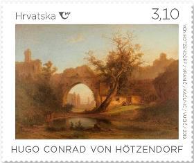The oil painting Landscape (1867) is representative of Hötzendorf’s later work. This painting represents all his painting talents: a skilful composition, a romantic attitude towards ruins of architectural monuments, a detailed landscape and a refined use of light. All these elements create a qualitative distinction between Hötzendorf and other Croatian painters of his time.