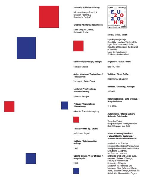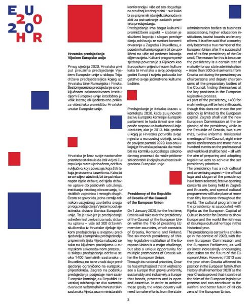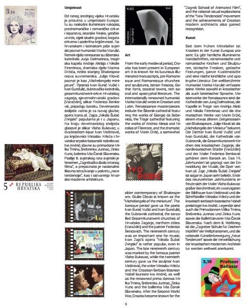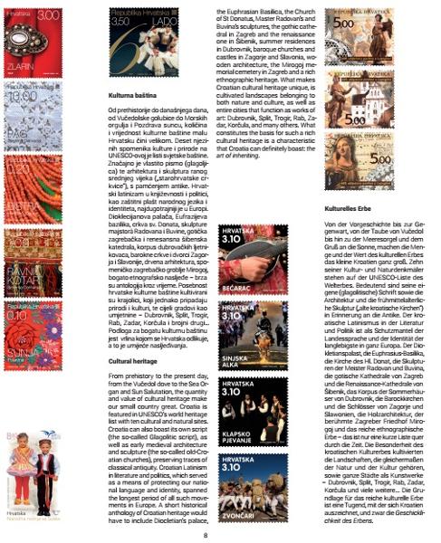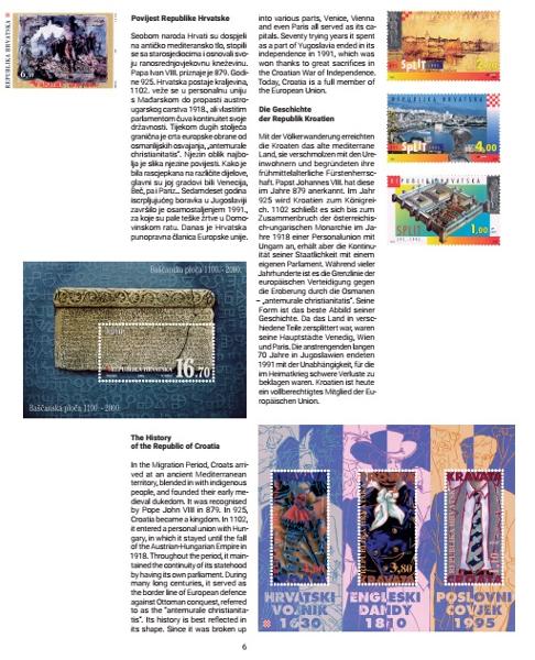 Commemorative album consist 20 pages with sheet „CROATIAN PRESIDENCY OF THE COUNCIL OF THE EUROPEAN UNION“, texts about more themes: (sport,inventions and science, flora and fauna, cultural heritage, etc) and postage stamps visuals.