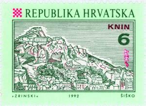 In the series of postage stamps entitled "Croatian towns", HPT-Croatian Post and Telecommunications issued a regular postage stamp -Knin-. Motif: Panoramic view of Knin with the stronghold. Knin, latest census 12 041 (1991.), town in the Knin plain (Dalmatian Zagora region), a junction of roads and rail lines. Archaeological findings suggest that Knin was inhabited in prehistoric times. The site was first mentioned by Constantine VII Flavius Porphyrogenitus in the 10th century. It was known as Tenen. The stronghold on the southern slopes is the biggest in the Dalmatian Zagora region, errected from the 10th to the 13th centuries. The Turks encircled a citadel by a wall. Knin was the capital of many Croatian kings, dukes, bans, bishops and the comitat governors. The princes Trpimir and Mucimir lived there, the kings Svetislav, Držislav, Zvonimir stayed there, too. The last Croatian king of the Croatian ruling house of Trpimirović chose it as the capital. Knin was also the seat of the Croatian bishopric, which was set up in 1040, and all the lands till the Drava came under its jurisdiction. There is the old Croatian parish of Cetina near Knin. The locality boasts the church of St. Spas dating back to the 11th century, encircled by an enormous necropolis including more than 700 vertical tombstones (stećaks) and about one thousand old Croatian graves. The stamp was issued in sheets of 50 pieces each,and HPT offered FDC as well as commemorative envelope.