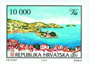 Motif: The centre of Vis with the Pirovo peninsula and the Franciscan monastery, the former site of the Issean theatre. In geographical terms, the island of Vis belongs to the group of mid-Dalmatian islands, 45 km away from the coast. It is the farthest island in its group; and its size (90 km2) makes it one of the medium-sized Croatian islands. Vis is the most densely populated island in the Adriatic. Its economy is founded on viticulture, fishing and fishing industry, with shipbuilding mostly for local needs. There are two towns on the island -Vis and Komiža- both well placed in beautiful natural bays, protected from most winds and several villages. The histories of the island and of the central town of Vis (former Issa) are closely intertwined. They go back for at least 5 000 years, encompassing major events both in the Adriatic and the broader Mediterranien area. Archaeological finds and the place names suggest that the island was inhabited as early as the Neolithic period, 3000 B. C., by the "Mediterraneans" who called it Issa (meaning "fortification"). In the 6th century, the Croats conquered Salona, and in the 7th and 8th centuries they began populating Issa, which they called Is. In 997, the Venetians were already calling it "a Croatian city". The inhabitants of Vis dearly paid for the island’s strategic position. Battles were constantly fought on and around the island. In the 18th, 19th and 20th centuries, Venice, Austria, France, Britain, fascist Italy and nazi Germany fought over it; the sea around it is strewn with wrecks, and many human lives were lost. For the first time, since the Serbian Navy was forced to leave in 1992, this hitherto "forbidden island" is free to look forward to its future. The stamp was printed in sheets of 50 pieces each. HPT issued first day cover (FDC) and a commemorative sheet.