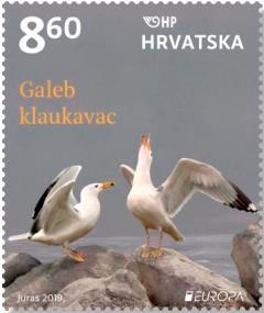 When we mention gulls, the image of Jonathan Livingston Seagull crops up in our minds, reminding us of the symbolism of achieving knowledge in free flight, which was outlined by R. Bach (1970). Croatia is a maritime country and one of the most beautiful things connecting its sea to the sky is the yellow-legged gull, Larus michahellis. There are more than 50 gull species around the world and, in Croatia, the yellow-legged gull nests on distant and uninhabited isles and islets in the Adriatic. It used to be considered aIzdavaË: HP−Hrvatska poπta d.d., JuriπiÊeva 13, ZAGREB, HRVATSKA Herausgeber: Kroatische Post, JuriπiÊeva 13, ZAGREB, KROATIEN Published by Croatian Post Inc., JuriπiÊeva 13, ZAGREB, CROATIA subspecies of L. cachinnans michahellis, but nowadays it is categorized as a separate species. The yellow-legged gull is characterized by its yellow legs and grey back and wings with darker tips on the primary flight feathers. It has webbed feet. Its neck and abdomen are white, while its bill is yellow with a bright red spot on the lower jaw. It is between 55 and 67 cm long and its wingspan varies between 130 and 150 cm. The two genders look similar. The yellow-legged gull lays eggs on the ground with sparse vegetation but nesting on rooftops has also been recorded (Rovinj, Istria). It nests in colonies. It is ready to nest at between three and fve years of age. It produces only one brood a year. In April, May or June, the female lays 2 or 3 eggs. Both the male and the female incubate the eggs for 28 to 30 days and both feed the young. The chicks stay in the nest for another 35 or 40 days. The yellow-legged gull can live for 10 years or longer. Its diet consists of fsh, crabs and shellfsh, but it also relies on other food of animal or plant origin. In order to feed, it enters inhabited areas and travels deeper into the Croatian mainland to visit landfll sites where it has also been known to gather in larger numbers. Its diet can also include carrion. The yellow-legged gull population in Croatia has been estimated to include between 40,000 and 60,000 nesting pairs. This species is not endangered, but stable; however it is protected by law (The Rules on the Protection of Certain Bird Species (Aves)), so locals are not allowed to take its eggs. If its nest is robbed, the yellow-legged gull makes up for the loss by producing another brood in the same season. The yellow-legged gull is a resident bird and it spends the entire year near its nesting site. However, young gulls can take part in dispersive migrations outside the Adriatic area, moving inland to visit fresh waters, and some have even been known to migrate to the coasts of northern Europe, from where they returned to the Adriatic. These migrations by the local yellow-legged gull populations have been proven by ringing and bio-marker analysis, which was performed in Croatia for the frst time (1988). Jasmina MuæiniÊ, PhD, retired Senior Research Fellow