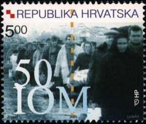 The stamps have been issued in 20-stamp sheets, and the Croatian Post has also issued the commemorative First Day Cover (FDC). When the UN Assembly announced for the first time that June 20 should be proclaimed the World Refugees' Day, the High Commissioner for Refugees addressed it with the following words: "As the voice of those mostly voiceless I thank you. Refugees deserve our consideration and respect. Respect above everything. The Refugees' Day ought to become the moment for all of us to ponder on what should be done." The Croatian Post has joined this invitation in the appropriate way, paying respect to the hundreds of thousands of primarily our own refugees and displaced people, but also to those millions the High Commissioner was talking about: by issuing two commemorative postage stamps. These stamps have been dedicated to two anniversaries of those organizations engaged in dealing with the misfortunes of the voiceless - the 50th anniversary of the UN High Commission for Refugees, UNHCR, and also to the 50th anniversary of the somewhat less known but not less active international organization for refugees, IOM. During the recently finished War of Independence, Croatia was fortunate or unfortunate to have the opportunity to come into immediate contact with the activities of both organizations. It was them that have helped our country at a particular moment to look after more than 750 000 refugees, both our own and those from the neighbouring country. From our point of view, as the Croatian Post, we consider this to be more than a sufficient reason to dedicate these stamps in order to contribute to the respect and expression of the voiceless. The Croatian Post has engaged its expert designer Boris Ljubičić to try express this voicelessness of the desperate people in a language of design and thus speak in their name. He has chosen motives well known to our generation, the imminent victims of the winds of war; the martyrdom of the individual leaning against the wall, for the first stamp, and the martyrdom of the group stepping over an imaginary border, for the second one, pledging them to the light-blue hope of the UN flag - the colour to which so many wishes have been directed in the last half century. And under which blue shadow so many noble deeds have been performed. This laconic expression of the designer, though IOM is not an UN agency, pays tribute and faith to the dedicated people who have been trying for fifty years, through these two organizations, to offer asylum, refuge and sanctuary and to help the unfortunate part of humankind. There is still a question whether the blue hope has always and in all situations been at the level of its task, but this falls outside the range of this occasion. Humankind, particularized and globalized, will continue facing hardship and misfortune, i.e. the so called voluntary economic migrations or real involuntary exile, and it will continue to have the need for organizations like the UNHCR and IOM.