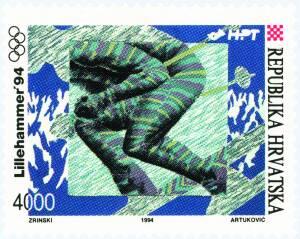 The first historical records of the Olympic Games date back into Ancient Greece as far as 776 B.C. The last record of the Games was from 393 B.C., a year when the Games were banned by the Roman emperor Theodosius II. The Olympic Games were held together with the religious festivities dedicated to Zeus in his temple on the Mount Olympus, on the Peloponnesus peninsula. The promoter of the modern Olympic Games was the French pedagogue and baron Pierre de Coubertin. In 1894 he organized an International Congress in Paris, with the idea to form the International Olympic Committee and resume the organization of the Olympic Games. The first modern Olympis Games were held in 1896, in Athens. Their sign became the five multicoloured, interlaced circles on a white flag, symbolizing the five continents. In 1994., from February 12-27 the 17th Winter Olympic Games took place in Lillehammer, Norway. The Croatian Post and Telecommunications issued a First Day Cover and a commemorative sheet.