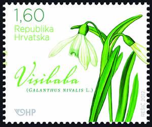 Snowdrop Galanthus nivalis L., Daffodil family (Amaryllidaceae) Native wild species protected by law German: Schneeglöckchen French: Perce-neige Italian: Bucaneve Snowdrop is a perennial plant 10-15 cm high, with an oval bulb 1.5 cm in diameter. The stems are solitary; they grow sparsely, two from one bulb. Linear leaves are in blooming time up to 10 cm long and only about 0.5 cm wide. Faintly scented flowers are solitary and hanging, shiny-white in colour. The perianth consists of two circles, each with three free leaves (“petals“): the three spread outer ones are longer than the three shrunken inner ones that are greenish toward the top. The snowdrop is the earliest blooming spring flower, blooming already beneath snow, from the end of February to the beginning of April. Its fruit is a yellow-green capsule with several light seeds, dispersed by ants. It grows in deciduous, mixed and evergreen forests throughout Europe, from flooded plains to pre-mountain areas on moist, rich and light soils. Because of too frequent picking, all European populations of snowdrops have dangerously shrunk and therefore the species is today everywhere protected by law. How endangered and rare it has become tells us also the fact that based on CITES regulative the trade in this endangered species has become strongly forbidden. By the scientific name of its family (Greek: gala=milk and anthos=flower) and species (Latin: nivalis=snow-white) the snowdrop is entirely in the sign of white colour. Today, it is considered that the strange plant from the Homer’s Odyssey was just the snowdrop. It symbolises the arrival of spring and awakening of new life, and is often grown also in gardens and in pots. Since ancient times very popular culture, snowdrops have had a number of cultivars: the enthusiasts and collectors of snowdrops are so numerous that they found associations and call themselves “galantophiles”.