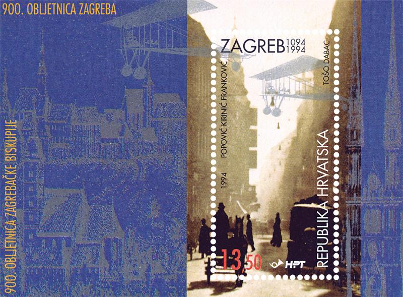 Motifs: the Late Gothic bishop’s staff (15th c.), Valvasor’s view of Zagreb with the Cathedral (17th c.), a printed music sheet from St. Justine’s breviary (13th c.), a Zagreb gas lantern on a photo by Tošo Dabac (20th c.), St. Mark’s Church on Gradec (13th to 19th c.), the "Maxi Cat" figure from Zlatko Grgić’s series of animated films, the Zagreb School of Animated Film (20th c.), the airplane constructed by S. Penkala, inventor from Zagreb (20th c.), the building of the Zagreb Exchange, designed by the architect V.Kovačić from Zagreb (20th c.), the Glass Tower of the office building Cibona, designed by the architects M. Hržić, I. Piteša and B. Šerbetić (1986-7). Christianity set in on the territory of the Croatian state in the 3rd century under the influence of Roman culture. It was promoted by Roman soldiers and merchants so that, despite persecution, several bishoprics have been founded in the provinces of Dalmatia and Pannonia. At the beginning of the 7th century we can note the advance of Croatian tribes on the European historical stage. Having defeated the Avars after many years of fighting, the Croats drove them away and settled down to stay for ever on the present-day historic and ethnic territory. This is where they encountered the already developed Christianity, i.e., the Roman Catholic faith, whose influence they accepted and were baptized without being forced to do so. The close links of Croatioa to Roman Catholicism and the Holy See have remained permanent and strong ever since. Thus Pope John VIII acknowledged the independent Croatian state in his letter to Prince Branimir in the year 879; Pope Gregory VII sent his legate to crown Zvonimir as Croatian king in 1075. One of the most important events in this historical development was the founding of the Zagreb Bishopric. It was the Hungarian King Ladislav I who founded it in 1094, "inspired by God’s grace" and driven by the wish "to bring back onto the path of truth through bishops’ care those who have been misled by their false beliefs and whom idolatry kept away from honouring God". Besides the justifiable religious reasons, Ladislav was moved to this act by political interests too, as he wanted to strengthen the influence of the Arpad dynasty in Croatia. There is no written chart regarding the founding of the Zagreb Bishopric, but the event has been testified by the document issued by archbishop Felician from the city of Esztergom in 1134. We learn from this document that the first bishop of Zagreb was Duh, Czeck by origin, and that he was nominated by king Ladislav himself. The newly-founded bishopric was submitted to the archbishopric of Esztergon. With the bishop’s seat established, the settlement Kaptol with its houses built for the church functionaries, the canons, was developed and the building of the new cathedral, dedicated to the Assumption of the Virgin Mary and to St. Stephen, was completed in 1217. Thus Zagreb, the Zagreb Bishopric and the Zagreb Cathedral entered history. Together with this series of four stamps in sale in sheets of 20 stamps each, Croatian Post and Telecommunications issued the block, commemorative first day covers and the first day sheet.