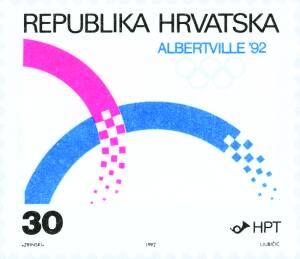On the occasion of the Winter Olympic Games Albertville '92., HPT - Croatian Post and Telecommunications issued a commemorative postage stamp in a value of 30 HRD. Motif: stylized olympic rings and arms of Croatia.The stamp was printed in sheets of 25 pieces each. A commemorative envelope and the envelope of the first date of issue (FDC) were placed on sale by HPT too.