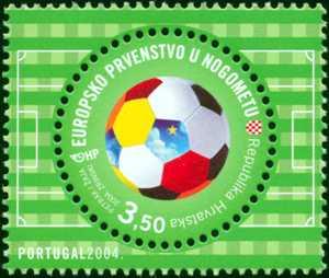 Motiv: nogometna lopta na nogometnom polju Od 12. lipnja do 4. srpnja u Portugalu će se održati 12. europsko nogometno prvenstvo na kojem će nastupiti 16 najboljih reprezentacija podijeljenih u četiri skupine s po četiri ekipe. Natjecanje će se održati u osam gradova i na deset stadiona - u Aveiru, Bragi, Coimbri, Faro-Loulu, Guimaraesu, Leiri, Lisabonu i Portu. Domaćini su u izgradnju osam novih stadiona i obnovu dvaju starih uložili 630 milijuna dolara. Nastup na Europskome nogometnom prvenstvu 2004. bit će drugi nastup Hrvatske na tom natjecanju nakon stjecanja neovisnosti, a premijerni nastup "vatreni" su imali 1996. u Engleskoj, kada su stigli do četvrtfinala. Nakon sto su u skupini pobijedili Dansku i Tursku, te izgubili od Portugala, u četvrtfinalu su odabranici Ćire Blaževića dugo mučili Njemačku, no "Elf" je sretno i spretno izborio pobjedu (2:1), a poslije osvojio i naslov prvaka Europe. Ostat će zapisano kako je strijelac prvog pogotka hrvatske reprezentacije na završnici jednog europskog ili svjetskog natjecanja bio Goran Vlaović, koji je dao gol protiv Turske. Četiri godine poslije "zapeli" smo u kvalifikacijama i godine 2000. naši su nogometaši propustili Europsko prvenstvo u Belgiji i Nizozemskoj. Ni u izlučnim nadmetanjima za plasman u Portugal nije bilo blistavo. Na čelu s novim izbornikom Ottom Barićem, Hrvatska je na domaćem terenu otvorila kvalifikacije neodlučenim rezultatom protiv Estonije (0:0), a zatim izgubila u Bugarskoj (0:2). No, Barić je ipak "posložio" redove i "kockasti" su s pet pobjeda u šest susreta izborili dodatne kvalifikacije sa Slovenijom. U Zagrebu 1:1 i pobjeda u Ljubljani (1:0) osigurali su hrvatskoj momčadi vizu za EP. Hrvatska će u Portugalu igrati u skupini B sa Švicarskom (13. 6. Leiria), aktualnim europskim prvacima - Francuskom (17. 6. Leiria), te Engleskom (21. 6. Lisabon). U skupini A, uz domaćina - Portugal, su Španjolska, Grčka i Rusija, u skupini C, snage će odmjeriti Italija, Švedska, Bugarska i Danska, a u skupini D, Njemačka, Češka, Nizozemska i Letonija. Po dvije najbolje reprezentacije iz svake skupine plasirat će se u četvrtfinale, koje se igra u Lisabonu (na dva stadiona) te u Faro-Loulu i Portu. Polufinalni susreti igrat će se u Lisabonu i Portu, a finale 4. srpnja na stadionu "Luz" u Lisabonu. Očekuje se da će ovoga ljeta u Portugal stići oko 1,2 milijuna ljubitelja nogometa iz svih dijelova Europe. Na dosadašnjim natjecanjima europskoga prvenstva najviše je uspjeha imala Njemačka, koja je osvojila tri naslova (1972., 1980. i 1996.), a 1976. i 1992. igrala je u u finalu. Francuzi su dva puta bili europski prvaci - godine 1984. i 2000., a bivši Sovjetski Savez i Čehoslovačka, te Italija, Španjolska, Nizozemska i Danska, jednom. Europsko natjecanje, najprije nazvano Europskim kupom nacija, počelo je s kvalifikacijama ujesen godine 1958. Mnoge nogometne sile bile su skeptične pa je prvo natjecanje proteklo bez Njemačke, Italije, Nizozemske... No, u idućim desetljećima to se natjecanje razvilo u jedno od najvećih i najzanimljivijih sportskih događaja na svijetu. Svoje mjesto među rekorderima europskih prvenstva imaju i dvojica Hrvata - Dražen Jerković i Davor Šuker. Jerković je u dresu bivše države osvojio srebrnu medalju na Europskom prvenstvu godine 1960., a bio je i među pet najboljih strijelaca na završnom turniru u Francuskoj. Šuker, pak, sa Španjolcem Raulom trenutačno dijeli prvo mjesto na vječnoj listi strijelaca na europskim prvenstvima, uključujući kvalifikacije i završnice, s 19 pogodaka. Šuker je 12 golova dao u kvalifikacijama za EURO 1996., još tri u završnici, te četiri u kvalifikacijama za EURO 2000. Iako su naši nogometaši u iznimno teškoj skupini, ljubitelji nogometa u Hrvatskoj vjeruju da će izbornik Barić sa šireg popisa nogometaša, od kojih većina igra u inozemstvu, sastaviti respektabilnu reprezentaciju. Na tom su popisu Otta Barića : Vratari: Stipe Pletikosa (Hajduk), Tomislav Butina (Club Brugge) i Joey Didulica (Austria Bee) Braniči: Dario Šimić (Milan), Robert Kovač (Bayern), Josip Šimunić (Hertha), Boris Zivković (Bayer), Stjepan Tomaš (Fenerbahee), Mato Neretljak (Hajduk) i Mario Tokić (GAK) Vezni igrači: Darijo Srna (Sahtar), Giovanni Rosso (Maccabi Haifa), Jerko Leko (Dinamo Kijev), Niko Kovač (Bayern), Marko Babić (Bayer), Igor Tudor (Juventus), Jasmin Agić (Dinamo), Srđan Andrić (Hajduk), Jurica Vranješ (Stuttgart), Milan Rapaić (Ancona) i Niko Kranjčar (Dinamo) Napadači: Dado Pršo (Monaco), Ivica Olić (CSKA Moskva), Ivica Mornar (Portsmouth), Tomo Šokota (Benfica), Ivan Klasnić (Werder), Tomislav Marić (Borussia Moenchengladbach) i Marijo Marić (Karnten).