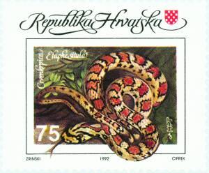 Povodom 5. lipnja, Svjetskog dana zaštite okoliša HPT je izdao dvije prigodne poštanske marke različitih vrijednosti na temu "Zaštita okoliša". Osvještavanje znanstvene i posebno zainteresirane javnosti na temu zaštite okoliša dogodilo se negdje 60-ih godina dvadesetog stoljeća.Ta su kretanja okrunjena Prvom svjetskom konferencijom o zaštiti okoliša započetom 5. lipnja 1973. u Stockholmu. Hrvatska je u pogledu zaštite životinjskih vrsta jedna od najznačajnijih zemalja u Europi.Kod nas su, iako u ograničenom broju, sačuvane neke životinjske vrste koje su u mnogim europskim zemljama postale najveća vrijednost. "Pjegava crvenkrpica" - Malo je ljudi koji zmije smatraju lijepima. Međutim boje i privlačnost šara crvenkrpica doista svraćaju pozornost baš ljepotom. Riječ je o ne suviše čestoj zmiji, rasprostranjenoj u Sredozemlju, ali osobito zastupljenoj na primorskim stranama Velebita posebno u kanjonima Velike i Male Paklenice. Kao tipičan predstavnik svog roda u mladosti se hrani kukcima, a poslije glodavcima i sitnim gmazovima. Njezine je cimetasto-crvene šare čine upadljivom kada je maknuta sa svoje prirodne podloge. Kako je riječ o zmiji koja nije otrovnica, zapravo dekorativnoj vrsti, mnogi mladi primjerci stradaju zbog ljudske znatiželje. Marke su izdane u arcima od 25 komada. HPT je pustio u prodaju prigodne omotnice prvog dana (FDC) i prigodni list.