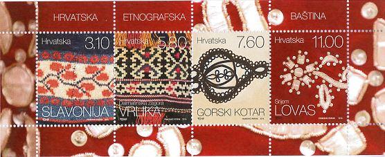 Nose li se na Dugom otoku kratke suknje? Ne, nego na Susku. Raste li na Zlatnom ratu zlatno cvijeće? Ne, nego u Đakovštini. Nose li se u Plaviću plave surke? Ne, nego u Slavoniji. Mogli bismo sa šalama nastaviti u dugom nizu. Ali i ovoliko je dovoljno da podsjeti koliko je mala Hrvatska beskrajna, koliko raznolikosti ima na njezinoj površini koja je granica i poveznica između srednje Europe i Mediterana, između panonske ravnice i dinarskih brda, između slijeva Save i Drave i jadranske obale. I najmanje zemljopisne jedinice nekada su bile obilježene vlastitim dijalektom, koji se razlikovao od ostalih po naravi rječnika, po naglascima, po ulozi postupnog posredovanja između jačih sredina. Ono što vrijedi za verbalni izražajni svijet, vrijedi i za onaj likovni. Svaki je kraj drugačije „dizajnirao“ ljudsku pojavu, upotrebljavao drugačije materijale u skladu s onim što je od zemlje tražio i dobivao. Negdje u podlozi stoji lan, negdje ovca; negdje svilena nit, negdje vunena pređica; negdje stakalca, negdje koralj. Kad je industrijska civilizacija ušla u rukotvoran svijet, kao najdragocjeniji ukrasi, upravo u vrličkom kraju, znali su se našivati strojno proizvedeni gumbi. Velike su razlike i u predstavljanju ljudskog lika. Visoke i uspravne djevojke Zagore poput karijatida, lepršave leptirice u širokim kratkim suknjama sa spomenutog otoka Suska, pozlaćene kraljevne sjeveroistočne Hrvatske, cvijećem obasute Posavke… Stilizacija ljudske figure dolazila je, dakako, i od pamćenja stila, pa su narodne nošnje na neki način herbarij mode proteklih vremena. Ali kako univerzalni mediji potiru razlike, kako stroj istiskuje ruku, a pojedinačno postaje umnoživo, i još to predstavlja kao vrlinu, ulažući tek u kreativnost predloška, tako iščezavaju i zemljopisne nijanse dijalekata, verbalnih i likovnih; ustaljene predodžbe o predstavljanju ljudskog lika; tvari koje se od zemlje više ne traže i ne dobivaju. Tako narodne nošnje postaju eksponati, prenose se iz primarnog u sekundaran život, u muzejske vitrine, u turističke spektakle. Njihova snažna preostala funkcija još je funkcija inspiracije. I kao što su one čuvale memoriju, sada same postaju njezino blago. Blago kojim raspolažemo još uvijek u znatnoj mjeri i kojim legitimiramo darovitost svoje povijesti. Šaljući to naše blago na uvid svijetu, Hrvatska pošta izdala je niz maraka, u nekoliko serija. U ovoj posljednjoj predstavljeni su detalji ruha Slavonije, Vrlike, Gorskog kotara i Lovasa. Prekrasni, suvremeno kadrirani detalji nemaju, međutim, samo likovnu (raz-likovnu) vrijednost, nego nude i neke simbolične naznake. Slavonsku surku obilježava toplina tkanine, primjerena sjevernoj hladnoći; jesenske grančice – godišnje doba kad se ispunja smisao slavonske zemlje; znatna količina plave boje – nigdje nema toliko plave boje kao ondje gdje je neizmjerno nebo iznad ravnice; trobojnost – crven, bijeli, plavi – misao na zastavu uvijek, i onda kad se čini da ta zastava na te ne misli. Na komadiću vrličke tkanine vidljiv je ubrzan, jednolik, apstraktan ritam, nalik na jednako takvu pjesmu i kolo; sitno i strpljivo tkanje koje dijeli oblike i s dalekim krajevima istočnog svijeta. Crno-bijeli Gorski kotar, nešto kao snijeg i šume, rukopis zaborava i pamćenja: taj toliko zapostavljen kraj da mora sam sebe pamtiti. I napokon Lovas, pred kojim se čovjek ježi od asocijacija: bijeli cvijet na krvavoj podlozi, posut zlatnim ljuskicama počasti. To su, dakako, naša znanja. Ono što upućujemo svijetu bit će dovoljno kao sama ljepota. Željka Čorak