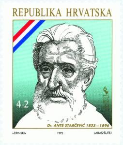 HPT je izdao iz serije poštanskih maraka "Hrvatski velikani" redovitu poštansku marku s likom Ante Starčevića. U nominalnoj vrijednosti marke sadržan je iznos od 4 HRD za plaćanje poštanskih usluga, plus doplatni iznos od 2 HRD u korist bankovno-razvojne institucije "Hrvatski radiša". Motiv: Ante Starčević (Žitnik 23. 05. 1823. - Zagreb 28. 02. 1896.) bio je veliki hrvatski političar, narodni zastupnik u Hrvatskom saboru, te osnivač i ideolog Hrvatske stranke prava. Zastupao je politiku pune nacionalne slobode i neovisnosti, bio je uporan i dosljedan pobornik demokratskih narodnih prava i političkih sloboda za široke narodne slojeve. Marka je tiskana u arcima od 30 komada, a HPT je pustio u prodaju omotnicu prvog dana izdanja (FDC) i prigodni list.