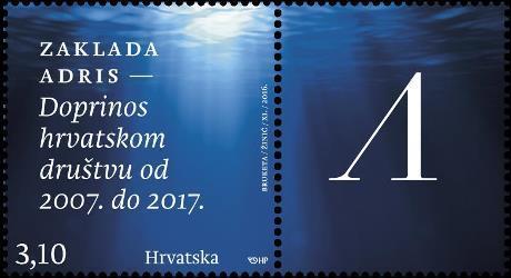 | Opis: | Motiv: morsko plavetnilo s prodirućom zrakom sunca Marka je izdana u arku od 10 maraka i sa 10 privjesaka, a Hrvatska pošta izdala je i prigodnu omotnicu prvog dana (FDC). Komercijalna poštanska marka izdana je u povodu desetljeća promicanja izvrsnosti, znanja i općeg dobra Zaklade Adris. Od 27. 11. 2017. u prodaji samo kao filatelistički proizvod. Od tog datuma marka više ne vrijedi za uporabu u poštanskom prometu. |