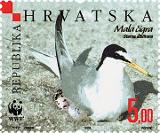 Motiv: Mala čigra (Sterna albifrons) Hrvatska pošta je u suradnji sa Svjetskim fondom za očuvanje prirode (World Widelife Fund For Nature – WWF), izdala četiri prigodne poštanske marke s motivom male čigre. Na markama je otisnut znak pande, odnosno logotip WWF-a, uz suglasnost registriranog vlasnika zaštitnog znaka. Među najljepšim, najatraktivnijim i najugroženijim krajobraznim bogatstvima i vrijednostima u Hrvatskoj i Europi svakako su rijeke sa šljunkovitim i pjeskovitim sprudovima i otocima, plićacima i limanima, brzacima i tišinama, virovima i gredama, rukavcima i barama, odronjenim strmim riječnim obalama i mnogim drugim oblicima koje stvaraju rijeke. U Hrvatskoj male čigre nastavaju upravo takva staništa i umnogome dijele njihovu sudbinu: među najljepšima su, najprivlačnijim i najugroženijim pticama. Male čigre su najmanje, ali i najelegantnije te najspretnije naše čigre. Tijelo im je vitko (od vrha kljuna do vrha repa duge su od 22 do 24 cm), pa su vrlo lagane – teže svega 40 do 60 grama. Usto, njihova krila su vrlo duga (raspon im je od 50 do 55 cm). Zato je njihov let vrlo lagan, okretan i skladan. Takav način leta malim čigrama je vrlo važan jer se hrane sitnim ribama, račićima i kukcima, što zahtijeva ustrajan let nad rijekom, osobito nad riječnim plićacima i rukavcima. Dok love, lete nisko nad rijekom, od dva do tri, pa sve do visine od 10 do 12 metara iznad površine vode. Kad uoče ribicu ili račića, strelovito se obrušavaju, zaranjaju i grabe plijen. Ako plijen dobro ne vide, prije obrušavanja nad njim zatrepere (treperenje je poseban način leta kada ptice mašući krilima «stoje» na jednom mjestu) kako bi ga bolje vidjele. Pri tome paze da im sunce bude iza leđa da bi bolje vidjele plijen i da bi plijen lošije vidio njih. Uspješnost lova, ovisno o vidljivosti (vidljivost smanjuju mutnoća vode, valovitost površine itd.), varira između 60 i 20 posto. Ribice kojima se hrane obično su dugačke od 4 do 6 cm, a najveće ne prelaze 10-ak cm. Osim u vodi, male čigre love i kukce u letu, obično nisko nad vodom. Male čigre se gnijezde u kolonijama na neobraslim ili slabo obraslim, obično šljunkovitim otocima, najčešće u zajednicama s većom i brojnijom crvenokljunom čigrom. Parove stvaraju još za vrijeme proljetne selidbe ili po dolasku na gnjezdišta tijekom svibnja, a par ostaje zajedno obično nekoliko sezona gniježđenja. Gnijezdo je plitka udubina u tlu obično obložena s malo biljnog materijala. Polog se obično sastoji od dva do tri jaja, a na jajima sjede oba partnera, no ženka ipak nešto više. Ptići se izlegu nakon 21 dana, a oba roditelja ih hrane i brinu se za njih. Dok su ptići mali, ženka ostaje s njima cijeli dan i grije ih. Za to vrijeme mužjak lovi sâm i hrani i ptiće i ženku. Kada ptići budu stari 5 do 6 dana ili više, oba roditelja ih hrane, tako da povremeno ostaju sami. Mladi počinju letjeti nakon dvadesetak dana, a roditelji ih hrane još neko vrijeme dok se ne osamostale. Mnoge ptice ostaju u obiteljskim jatima i tijekom jesenje selidbe (obiteljsko jato čine roditelji i njihovi već osamostaljeni ptići). Otprilike dva tjedna nakon prvog leta male čigre napuštaju gnjezdište i raspršuju se po široj okolici. Na jesenju selidbu kreću krajem kolovoza i u rujnu. Zimovalište malih čigri proteže se od atlantske obale zapadne Afrike pa sve do njenoga krajnjeg juga te dalje uz obale Indijskog oceana na sjever do Kenije, uključujući i otočja na zapadu Indijskog oceana. Stoga su male čigre pravi svjetski putnici koji za vrijeme selidbi prelijeću tisuće kilometara obalne linije od Sredozemnog mora, preko Atlantika pa sve do Indijskog oceana. Taj ogromni put ponavljaju dvaput godišnje, ujesen i u proljeće. Ovako zahtjevan selidbeni sustav u sprezi s nesigurnim, promjenljivim staništem kao što je rijeka, za opstanak zahtijeva mnogo vještine i iskustva. Stoga su male čigre – u usporedbi s ostalim malim pticama – dugovječne: one koje prežive prvih nekoliko godina steknu dovoljno iskustva i vještina pa dožive i do 30-ak, a vjerojatno i više godina. U kontinentalnom dijelu Hrvatske male čigre gnijezde se još samo na gornjem toku Drave (dvije male kolonije s ukupno 5 do 6 parova) i na Savi nizvodno od Zagreba (jedna kolonija s 20-ak parova). Stoga ih smatramo vrlo ugroženima i prijeti im neposredna opasnost od izumiranja u kontinentalnom dijelu Hrvatske. Najviše ih ugrožava neprestano uređivanje i kanaliziranje riječnih tokova ili potapanje rijeka umjetnim jezerima. Osim populacije malih čigri koja se gnijezdi na rijekama u Hrvatskoj postoji i mala populacija koja se gnijezdi na području od sjevernog dijela zadarskog otočja do Paga. Na malim, golim otočićima postoji 4 do 6 kolonija (ovisno o godini) s ukupno 30 do 40 parova. Te ptice love u plićacima i uvalama na isti način kao i one na rijekama. Nažalost, i ova populacija je ugrožena, najviše zbog sve većeg pritiska turizma, rekreativnih aktivnosti i ribarstva. Dragan Radović