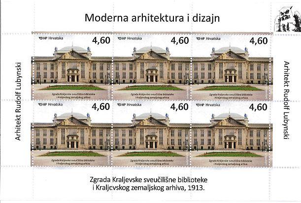 | Opis: | Motivi: prikaz eksterijera, interijera i detalja iz profesorske čitaonice Marke su izdane u arčićima od 6 maraka, a Hrvatska pošta izdala je i prigodnu omotnicu prvog dana (FDC). |
