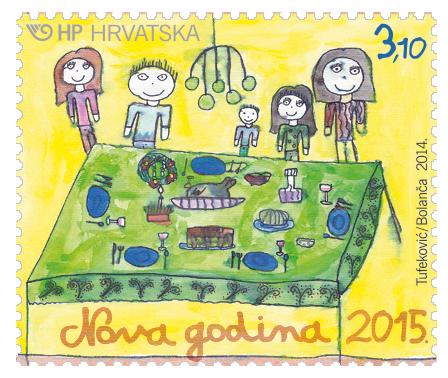 Kad je Hrvatska pošta djeci kao motiv novogodišnje marke predložila blagdanski stol, teško se moglo i zamisliti što će se sve dobiti kao odaziv. Bilo je tu toplih ugođaja slavonskih soba sa šarenim tkaninama, rasplesanih kokoši na pladnju, svinjica s mišjim njuškama i višestruko zakovrčanim repićima, udvostručenih orahnjača, čipkastih stolnjaka, bio je čak stol postavljen u snježnom krajoliku, kao gozba iz bajke, bilo je ljudskih nogu koje su ravnopravno s nogama stola podupirale bogato opterećenu ploču, sretnih mačaka i pasa na rubovima prizora... Bilo je vesele djece i raspjevanih obitelji, a jedno dijete jednako uspješno s ostalima vrtjelo se na invalidskim kolicima... Mnogi lijepi crteži nisu međutim bili pogodni za marku bilo preobiljem presitnih pojedinosti, koje postaju nečitke kad se smanje, bilo za ovu svrhu neprikladnom, ponekad trodimenzionalnom tehnikom. Na svašta treba misliti kad se želi proizvesti marka.