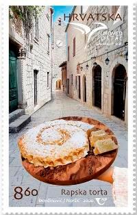 | Opis: | Motiv: rapska torta Marka je izdana u arku od 16 maraka, a Hrvatska pošta izdala je i prigodnu omotnicu prvog dana (FDC). |