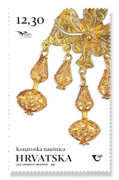 | Opis: | Motiv: konavoske naušnice – fjočice Marka je izdana u arku od 16 maraka, a Hrvatska pošta izdala je i prigodnu omotnicu prvog dana (FDC). |