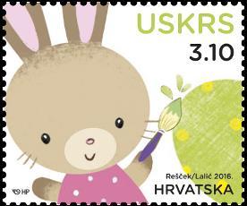 | Opis: | Motiv: uskrsni zec Marka je izdana u arku od 20 maraka, a Hrvatska pošta izdala je i prigodnu omotnicu prvog dana (FDC). |