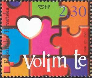 Marka je izdana u arku od 20 maraka. Hrvatska pošta izdala je i prigodnu omotnicu prvog dana (FDC), te ilustriranu dopisnicu. O“Valentinovu” i različitosti poimanja pojma ljubavi hrvatski književnik Ivan Kušan kaže: Kao mladac i mladi umjetnik, nisam još ništa znao o Valentinovu. Valentinovo nije uopće postojalo. Tek je bila završila tragedija Bleiburga i počela ona Gologa Otoka. Muškići smo obuvali "špagerice" ili "drvenjake", a djevojke, ako su imale, bakine "špicoke" i čarape s "homerski" debelim "natom". Parovi su se, u razmaku šetali, kratko i navečer, zrinjevačkim "korzom", sramežljivi parovi, tako reći bez dodira. Oni načitaniji, znali su samo za mračne događaje vezane uz taj datum. Tako je na Valentinovo nekoć, pred čikaškom garažom, među ostalima, poginuo (1947) i znameniti Al Capone. U slobodnoj Hrvatskoj, zasjalo je Valentinovo kao i u svijetu. To Valentino, prije svega blagdan ljubavi, zagrljaja, cjelova, mode, razmetanja, fizičkoga i duhovnoga, gdje hrabriji i hrabrije idu i dalje (i dublje). O tom smo uzvišenom osjećaju također znali nešto prije drugih. Čitali smo, listali. Veliki pisac T. S. Eliot upozoravao je na onoga, koga je smatrao ne samo većim od sebe, nego najvećim pjesnikom na svijetu! William Butler Yeats bio je jednostavan do srži, poglavito ljubavne. Pisao je “... kolikima se svidjela tvoja ljepota, i ljubili te, bilo iskreno ili neiskreno ...” Kao i stoljećima prije njega, u Kini, Lao-Tse “... ruža naše ljubavi i hrabrosti...”, jer zbog iskrene ljubavi čovjek postaje hrabar. Dotle je Shakespeare mogao biti i krajnje jednostavan, znalački:“... ljepota u oku žene... “( Uzaludni ljubavni trud ) Ili složenije (Twelfth Night): “...glazba, hrana ljubavi...”. Pesnik je Wordsworth pjevao prividno jednostavno o prividno jednostavnom:“...Duga dolazi i odlazi, a ruža je ljupka...”, a ljubv je i “...Djevojka koju nitko ne da je hvali, a tek poneki je ljubi...”. Apostol je Pavle propovijedao: Sloboda moja ljubav... Duhovni je plod – ljubav. Tko ne ljubi, ne poznaje Boga, jer Bog je ljubav. Nježnost (naklonost), u Poslanici Korinćanima prevodi se kao ljubav, latinski "caritas “ ... Nema straha u ljubavi, već prava ljubav odbacuje strah...”. Za velikoga španjolskoga dramatičara (Lope de Vega) “... sklad je čista ljubav”. Engleski drevni propovjednik i pjesnik John Donne , koji je Ernesta Hemingwaya nadahnuo za naslove nekih svojih djela, nekoć je pisao: “...Ljubav ne zna za godišnju dob, kao ni klimu, sate, dane, mjesece...”; Sv. je Augustin govorio da se "zaljubio u ljubav", a pjesnikinja iz pretprošlog stoljeća Christina Rossetti smatrala je "ljubav besmrtnom": “...Jer došao je rođendan mog života, moja je ljubav došla k meni...”, suvremeni je američki pisac James Thurber tvrdio " Sretan sam što postoje dva spola”. Ali ljubv može imati i svoju drugu stranu: Pamtimo, kako je tata Shakespeare pribilježio u “Kako vam drago”:“Ljudi s vremena na vrijeme umiru, i pojedu ih crvi, ali ne zbog ljubavi”. U novije je vrijeme španjolski mislilac Miguel de Unamuno (1864-1936) napisao kako je tužno "kad te ne vole, ali je mnogo tužnije kada nisi kadar voljeti". Na kraju, kao i na početku, omiljeni Eliotov pjesnik William Butler Yeats rekao je u svojim pjesmama i ovo: “Rekla mi je da ljubav shvatim bez uzbuđenja,... ali bio sam mlad i nerazborit i nisam se složio s njom. Ni o Valentinovu, dakle, “ništa se ne može mjeriti našom ljubavlju”. - - - - - Da bi u iznimnom, valentinskom zvučali što trajnije, dakle vječnije (ne samo u Yeatsovu pjesništvu, nego čak i u klasičnijoj povijesti (kad još Valentinova nije ni bilo, kao ni u Hrvatskoj), posegnuli smo za drevnim pojmom, koga nje bilo ni u latinštini. Zalud listati "De Verbo in Verbum". I u klasici je postojala riječ koja se zadržala u romanskim jezicima: "Amor" ili ljubav. Bez "amora", vidjeli smo, ne bi bilo ni Valentinova. Dakle, AMOR! Počnimo od materinske ljubavi: amor matris! A što mu znači: Amor non est medicabilis herbis? Ljubav se ne liječi travama? Ovidije je zapravo mislio da od ljubavi nema nikakva lijeka, najmanje o Valentinovu, koji još raspiruje. Kao njegove "Epistulae ex Ponto". Amor omnibus idem (ljubav je svima jednaka). Vergiliju, autoru "Enedije", pripisuje se kako je mislio da su sva stvorenja, koja nastanjuju zemlju (od ljudi do zvijeri i ptica) jednako sklona ljubavi. Amor ordinem nescit (tako je Sveti Jeronim mislio da ljubav ne zna za neki poredak, svi dođu na red – zaljube se - kao o Valentinovu). Znajmo, napokon, "amor vincit omnia": ljubav sve pobjeđuje! Sretno Valentinovo! Ivan Kušan