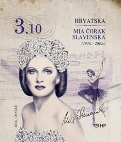 MIA ČORAK SLAVENSKA (1916. – 2002.) O Miji Čorak Slavenskoj apsolutno kompetentni dr. Slavko Batušić zapisao je 1942. godine u četvrtom tomu „Hrvatske enciklopedije“: „Najveća je i najnadarenija plesna umjetnica koja je do danas izašla iz hrvatskog naroda.“ Ova ocjena prkosi vremenu već više od sedam decenija s tim da joj se može, „uz najveća i najnadarenija“, dodati i „jedna od svjetski najpoznatijih Hrvatica 20. stoljeća“. Mia Čorak rođena je u Brodu na Savi 20. veljače 1916. godine. Otac Milan bio je ljekarnik, a majka Hedviga potječe iz glazbeno nadarene obitelji Palme. Obitelj će odseliti u Zagreb kada je Mia bila u dobi od godine dana i ondje ju majka, čim je pošteno prohodala, podvrgava glazbenoj i plesnoj pedagogiji stroge discipline i visokih kriterija. S navršene tri godine prvi put nastupa u Hrvatskome narodnom kazalištu ulogom Trouble u Madame Butterfly. Kao dijete uči balet kod Jozefine Weiss, potom ju podučavaju Margareta i Maksimilijan Froman, s kojima zajedno nastupa na pozornici HNK-a. U šestoj godini pleše u baletu La Sylphide. U sedmoj uči glasovir kao glavni predmet na Glazbenoj školi Muzičke akademije. S osam godina pleše Malo srce u Baranovićevu Licitarskom srcu, a s devet glavnu ulogu u baletu Figurine na pozornici HNK-a. S dvanaest odlazi u Beč kod baletnog majstora Opere Lea Duboisa i Grete Kraus Arnicki, koja ju uči modernom plesu. Iste godine usavršava se u Parizu kod glasovitih balerina Matilde Kschesinske, Olge Preobraženske i Ljubov Jegorove. Nakon povratka u Zagreb dvanaestogodišnja balerina priređuje u Hrvatskome glazbenom zavodu Plesno veče Mie Čorak i oduševljava i publiku i kritiku. Odmah potom postiže golem uspjeh ulogom princeze u Žar-ptici Igora Stravinskog. S trinaest je prva solistica baleta HNK-a, a primabalerina postaje s osamnaest godina. Na Olimpijadi u Berlinu 1936. godine pobjednica je u plesnoj konkurenciji. Godinu dana poslije trijumfira u Parizu nastupajući u prepunoj Salle Pleyel. Francuzi joj dodjeljuju orden Legije časti i proglašavaju je ambasadoricom dobre volje. Iste godine snima u Parizu poznati film Smrt labuda. Postavši prvo gostujuća, a potom primabalerina tada svjetski najpoznatije trupe Ballet Russe de Monte-Carlo, počinje njezin svjetski uspjeh. Pleše u Francuskoj, Engleskoj, Sjevernoj Americi i Kanadi, Južnoj Americi... Krajem Drugoga svjetskog rata formira Slavenska, Tihmar & Company i gostuje u desetcima gradova diljem Sjeverne Amerike. Nakon udaje (1946.) i rođenja kćeri Marije (1947.) gostuje s grupom Slavenska Ballet Variante u Americi, Kanadi i Srednjoj Americi. Slavenska Franklin Ballet formira 1952. godine i s njim kreira i producira poznati balet Tramvaj zvan želja prema djelu Tennesseeja Williamsa. Ponovo gostuje po Americi, ali i na Kubi te u Japanu. Nakon te turneje primabalerina je Metropolitan opere u New Yorku. Godine 1956. umjetnička je direktorica i gostujuća balerina Louiswille Balleta. Pet godina nastupala je u posebnim emisijama američkih televizijskih postaja. Umjetnički direktor Forth Worth Balleta je od 1958. godine. Plesati prestaje 1962. godine i počinje se baviti baletnom pedagogijom na University of California u Los Angelesu. Mia Čorak Slavenska umrla je 5. listopada 2002. godine u Los Angelesu, a 18. travnja 2005. godine urna s njezinim posmrtnim ostatcima prebačena je na groblje Mirogoj u Zagrebu. Stribor Schwendemann